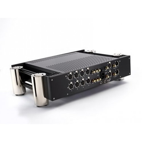 Универсальность устройства обеспечивается четырьмя парами симметричных входных XLR-разъемов и двумя парами входов с RCA-разъемами для несимметричных источников сигнала. Предусилитель также оборудован выходом для мониторинга или записи сигнала любого подключенного к нему источника.